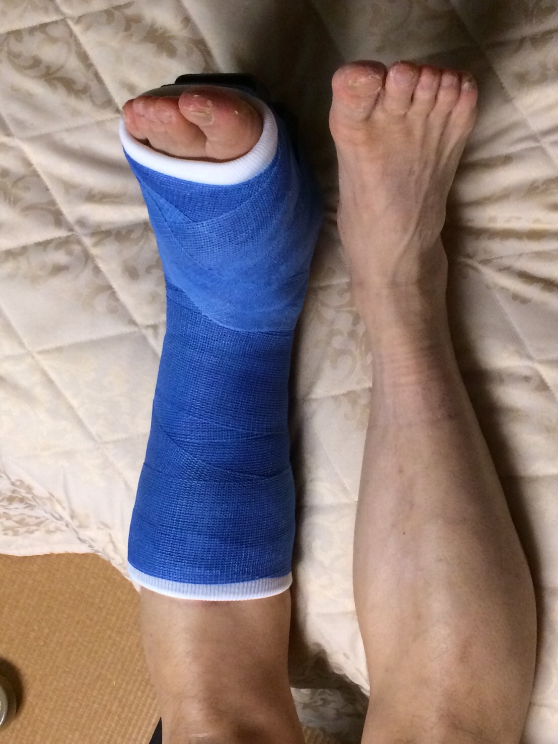 骨頭裂縫1mm,為了避免擴大裂縫,打石膏包紮起來,醫師知道我們行程還有三天,認為照舊應該OK,真是太好了~