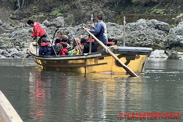 保津川遊船體驗 連接龜岡和京都屈指可數的名勝-嵐山的山間峽谷,長達約16公里的保津川,曾是將木材運往京城的水運中樞,現在則提供可接觸大自然的乘船旅遊(一趟約2個小時)。 船隻由3~5名的操槳者以嫻熟的技術操縱,在船上除了可欣賞到諸如春天的櫻花、夏天的新綠和秋天的紅葉等的四季風景,還可欣賞巨岩奇石的絕景,享受這種既有深淵又有激流,富於變化的溪流才能體驗到的刺激。 費用:成人4,100日圓,12/9日今天的遊船時刻表:9/10/11/12/13/14:30;今天開始是冬季船,備有暖氣者四班:10/11:30/13/14:30 交通:京都府龜岡市保津町下中島2電車:JR嵯峨野線「龜岡站」下車,徒步8分鐘・巴士:從嵐山小火車「龜岡站」,搭乘巴士前往保津川遊船乘船碼頭 我們搭乘12:00的遊船